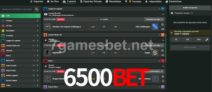 O 6500bet oferece uma grande seleção de opções de apostas em e-sports com probabilidades competitivas
